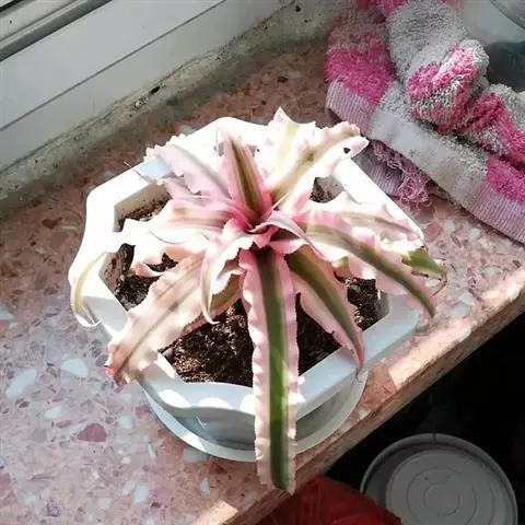 彩叶凤梨 L.B.Sm.) 凤梨科多年生常绿草本。株高25-30厘米,茎短。叶革质,带状,常基生,…