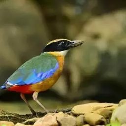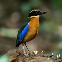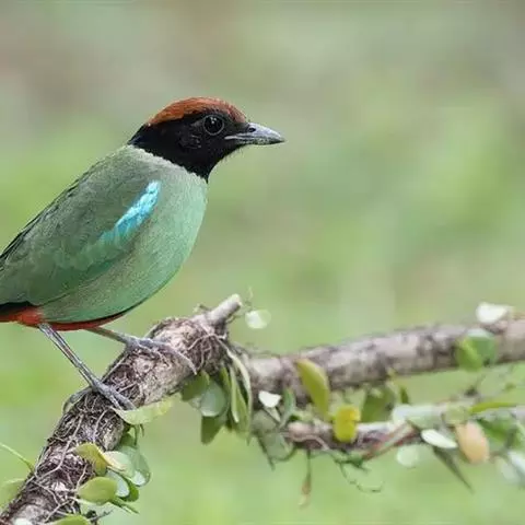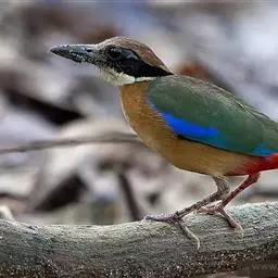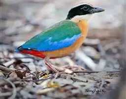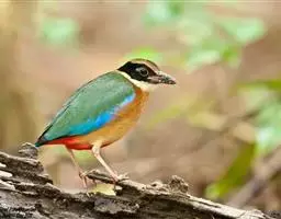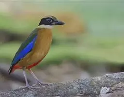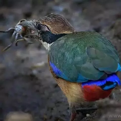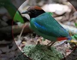 蓝翅八色鸫是雀形目八色鸫科的鸟类。体长17-20厘米,体重类约48-70克,体型圆胖,尾短,腿长,…