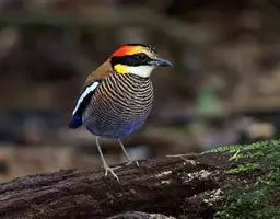 仙八色鸫是雀形目八色鸫科八色鸫属鸟类。雄鸟前额至枕部深栗色,有黑色中央冠纹,眉纹淡黄,…