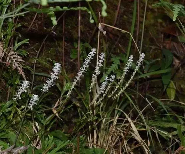 叶椭圆形至矩圆状披针形,长1-6厘米,宽1-3.5厘米,边缘皱波状,叶柄长1-6厘米。花葶高14-40厘米;穗状花序长3-14厘米,具多数花;花芬香,近轴的3-4枚花被片匙状狭条形至近丝状,至淡黄色,长3-8毫米,上部宽0.2-0.5毫米,其余2-3枚很短或不存在;雄蕊长1-1.5毫米,其中3枚较长;花药在顶端常多少汇合成一室。蒴果狭倒卵状,长约4毫米,宽2毫米,上半部开裂。种子多数,梭形,长1.8-2-8毫米,下端有尾,尾长约为种子的1/6-1/3。 花期4-5月,果期6月 。