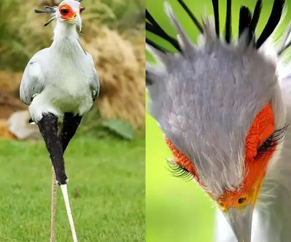 蛇鹫的腿像鹤腿一样修长挺拔,上半部长着黑色的短绒毛,看起来好像穿着一条马裤。小腿和脚表面长有很厚的角质鳞片,使其行走于灌丛时或捕蛇时脚部不致受到伤害。平常,蛇鹫就是如此迈着自己纤巧的长腿优雅地在非洲草原上走来走去——文雅的风度和独特的模样在猛禽家庭中独树一帜,使人很难想象它们捕猎时的凶猛。
