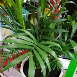 细叶棕竹,灌木,茎细如竹,多数聚生,有网状叶鞘。叶半圆形,掌状深裂,裂片狭长,阔线形,软垂,裂片7…
