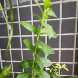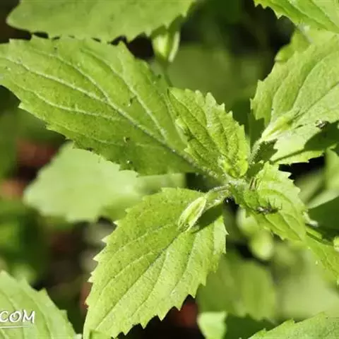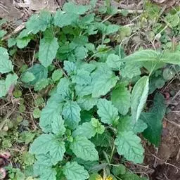 一年生草本,一年生草本。茎高0.3-1米,四棱形,多分枝,被灰白色疏短柔毛,茎下部的节及小枝基部通常微红色。叶通常为指状三裂,大小不等,长1-3.5厘米,宽1.5-2.5厘米,先端锐尖,基部楔状渐狭并下延至叶柄,裂片披针形,宽1.5-4毫米,中间的较大,两侧的较小,全缘,草质,上面暗橄榄绿色,被微柔毛,下面带灰绿色,被短柔毛,脉上及边缘较密,有腺点;叶柄长约2-10毫米。