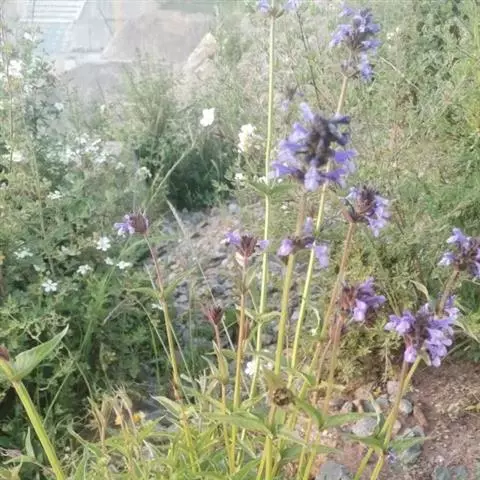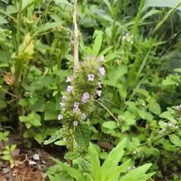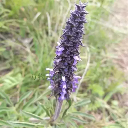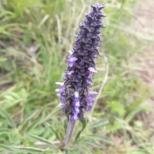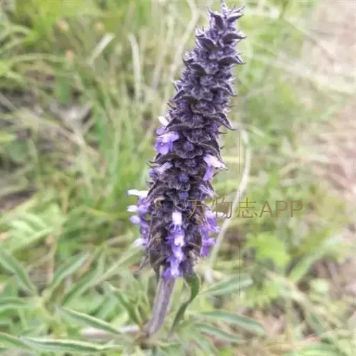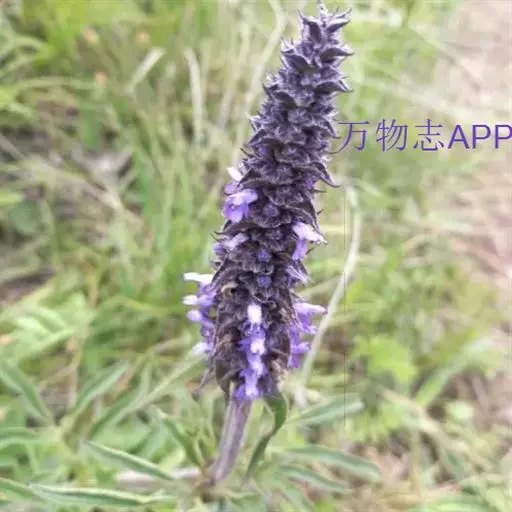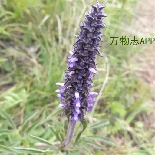 花序为多数轮伞花序组成的顶生穗状花序,长2-13厘米,通常生于主茎上的较长大而多花,生于侧枝上的较小而疏花,但均为间断的;苞片叶状,下部的较大,与叶同形,上部的渐变小,乃至与花等长,小苞片线形,极小。花萼管状钟形,长约3毫米,径1.2毫米,被灰色疏柔毛,具15脉,齿5,三角状披针形或披针形,先端渐尖,长约0.7毫米,后面的较前面的为长。花冠青紫色,长约4.5毫米,外被疏柔毛,内面无毛,冠筒向上扩展,冠檐二唇形,上唇先端2浅裂,下唇3裂,中裂片最大。雄蕊4,后对较长,均内藏,花药蓝色。花柱先端近相等2裂。小坚果长圆状三棱形,长约1.5毫米,径约0.7毫米,褐色,有小点。花期7-9月,果期在9月以后。