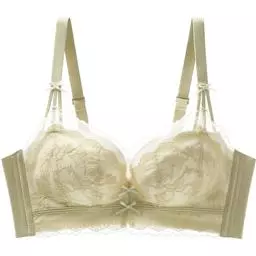 1.让手臂穿过肩带并将肩带置放在肩膀上。使用双手支撑胸罩的下围,身体微微向前倾并将乳房紧贴于罩杯里。