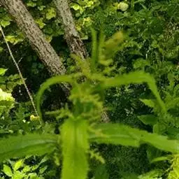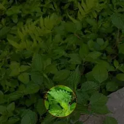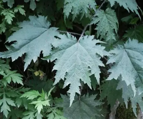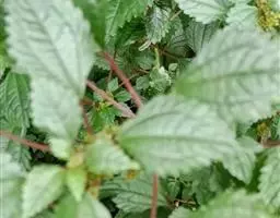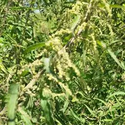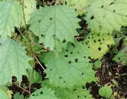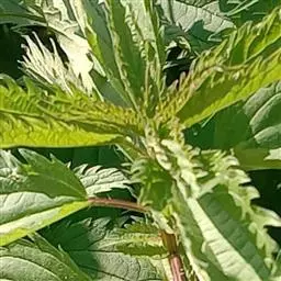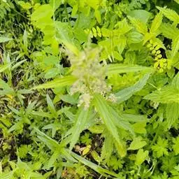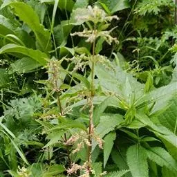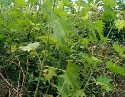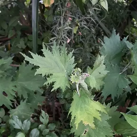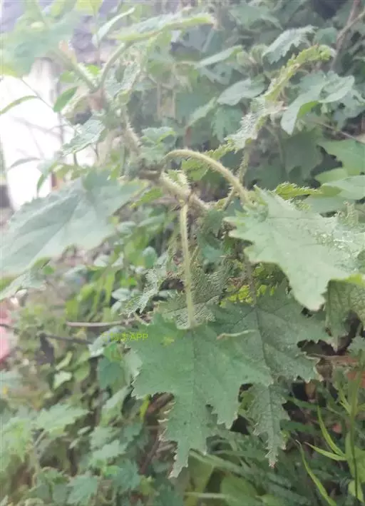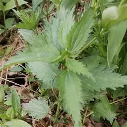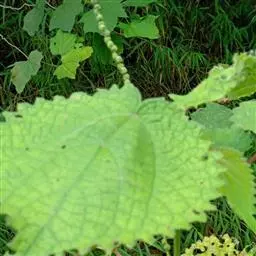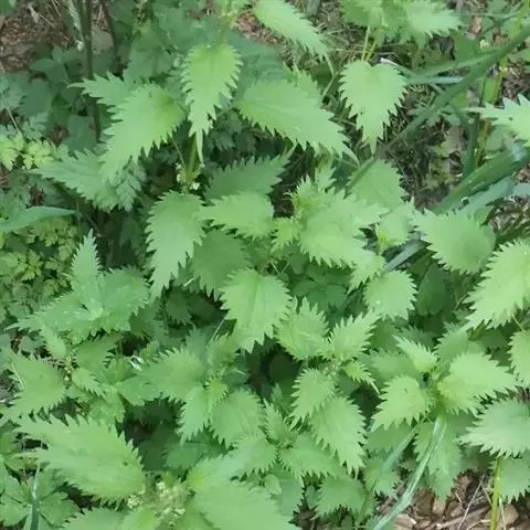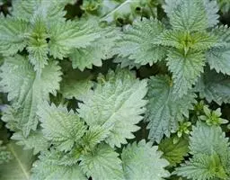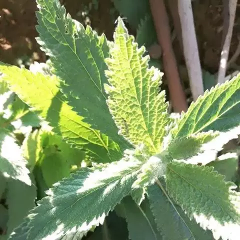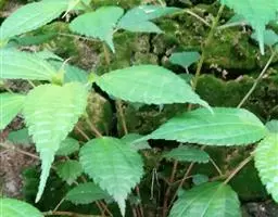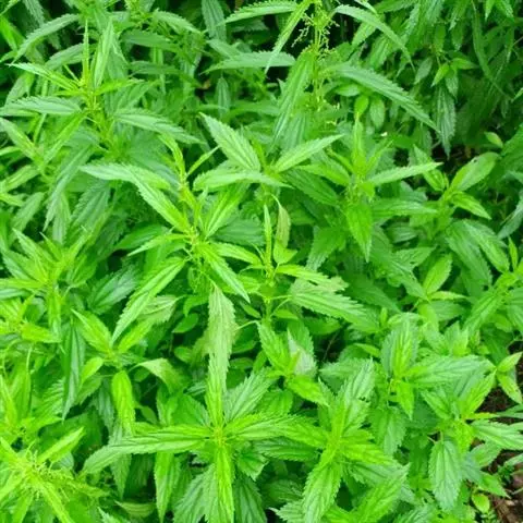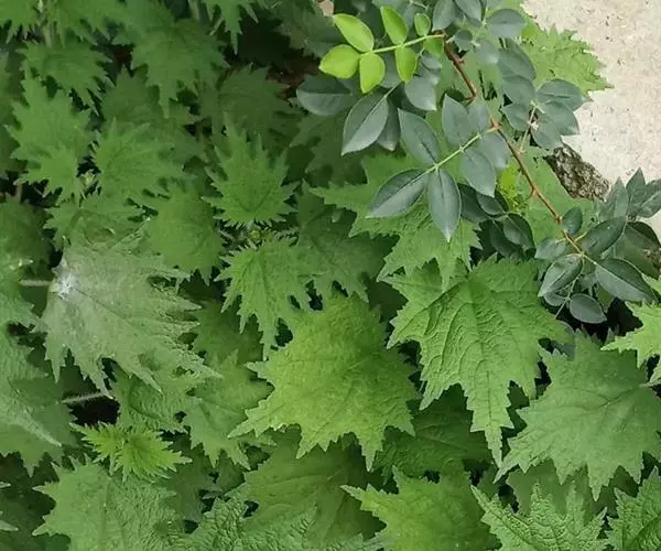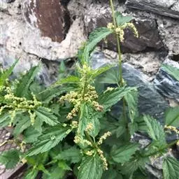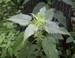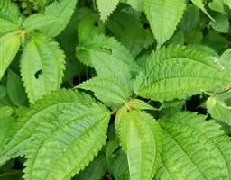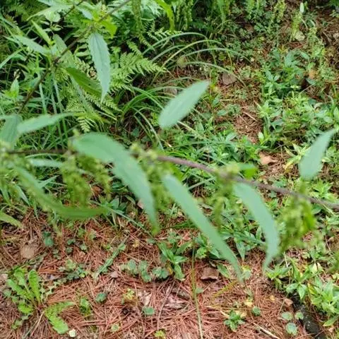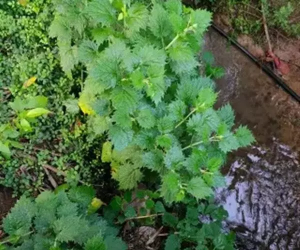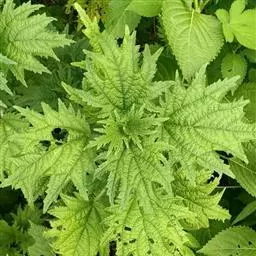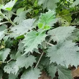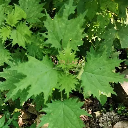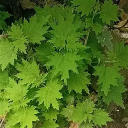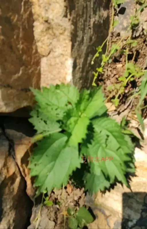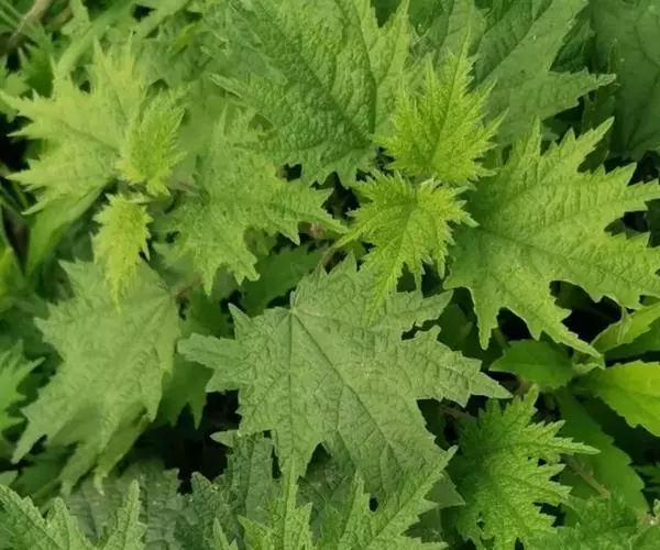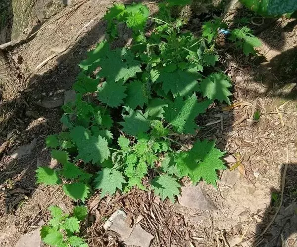 荨麻(学名:Urtica fissa E. Pritz.):多年生草本植物,高可达100厘米,四棱形,分枝少。叶片近膜质,宽卵形、椭圆形、五角形或近圆形轮廓,裂片自下向上逐渐增大,三角形或长圆形,上面绿色或深绿色,下面浅绿色,叶柄密生刺毛和微柔毛;托叶草质,绿色,雌雄同株,花序圆锥状,雄花具短梗,花被片在中下部合生,雌花小,几乎无梗;瘦果近圆形,表面有带褐红色的细疣点;8-10月开花,9-11月结果。