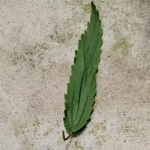叶近膜质,宽卵形、椭圆形、五角形或近圆形轮廓,长5-15厘米,宽3-14厘米,先端渐尖或锐尖,基部截形或心形,边缘有5-7对浅裂片或掌状3深裂(此时每裂片又分出2-4对不整齐的小裂片),裂片自下向上逐渐增大,三角形或长圆形,长1-5厘米,先端锐尖或尾状,边缘有数枚不整齐的牙齿状锯齿,上面绿色或深绿色,疏生刺毛和糙伏毛,下面浅绿色,被稍密的短柔毛,在脉上生较密的短柔毛和刺毛,钟乳体杆状、稀近点状,基出脉5条,上面一对伸达中上部裂齿尖,侧脉3-6对;叶柄长2-8厘米,密生刺毛和微柔毛;托叶草质,绿色,2枚在叶柄间合生,宽矩圆状卵形至矩圆形,长10-20毫米,先端钝圆,被微柔毛和钟乳体,有纵肋10-12条。