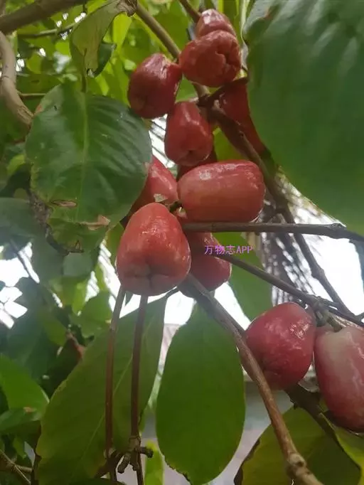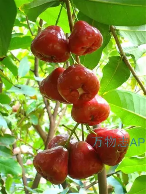 假果是由花托形成的肉质果,又称“梨果”,是由花托形成的肉质果,有陀螺形、扁菱形和卵圆形,有鲜红色、橙色和黄绿杂色。果肉脆嫩多汁,含水分87.8%,碳水化合物11.6%,蛋白质0.2%,脂肪0.1%,还含有多种维生素和钙、磷、铁等矿物元素,具有有利水、除湿、消肿之功,可防治肠胃病、慢性痢疾等。