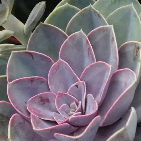 紫珍珠是景天科石莲花属的多年生肉质草本植物。植株中小型;叶片肉质,匙形,呈莲座状紧密排列;叶片粉紫色,…