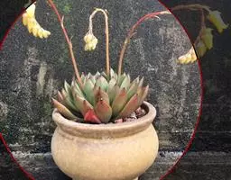 海琳娜叶蓝绿色、长匙形,前端较圆,急尖,呈莲花状紧密排列。秋冬出状态的时候,叶片会变得粉黄至粉红多充色泽,叶缘有点粉色透明感,呈包裹状态,非常冻人。海琳娜叶片比较厚,秋季温差大,或者光照充足的时候整体呈现粉灰色。海琳娜春末开花,小花钟形,橘红色。