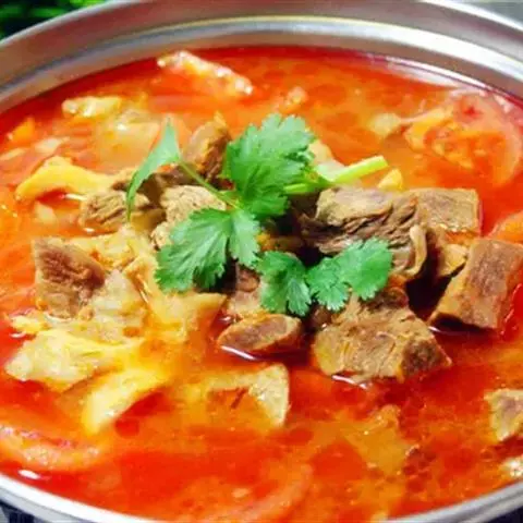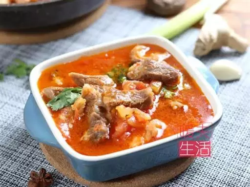 2、锅内放适量水,下入牛腩和十种药材,小火煲3-4小时。