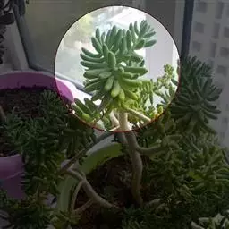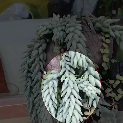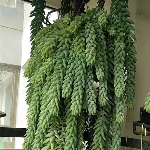 玉缀,别名翡翠景天(Sedum morganianum)景天科景天属(佛甲草属)常绿或半常绿多肉植物。植物匍匐下垂,翠绿色。叶小,多汁,纺锤形,、密密麻麻,似松鼠尾巴。花小,深玫瑰色,春季开放。