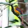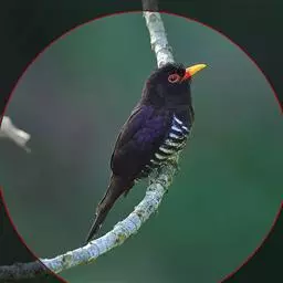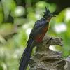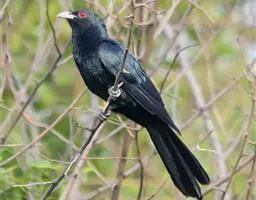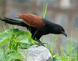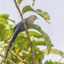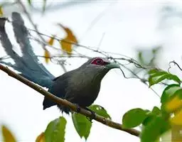 绿嘴地鹃:体形似小鸦鹃,但羽色大致绿灰;嘴绿色,头侧眼的周围有一裸区;后爪弯曲。虹膜赤红色,…