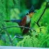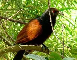 红翅凤头鹃:体长约38厘米,顶冠及凤头黑色,具显眼的直立凤头,背及尾黑色而带蓝色光泽,翅栗红色,…