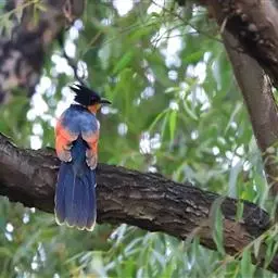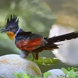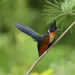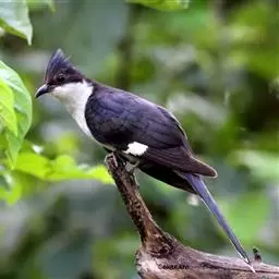 斑翅凤头鹃: 成鸟具羽冠,上体及头侧、翅、尾等黑色,具铁绿色亮辉,尾羽端部具白斑,两侧者形宽,…