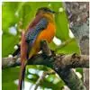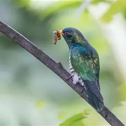 翠金鹃体长约17厘米,雄鸟上体辉绿色,头至背缀有很多棕栗色,…