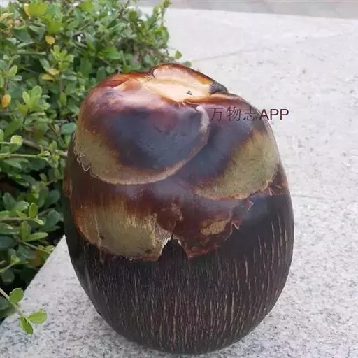 果卵球状或近球形,顶端微具三棱,长约15-25厘米,外果皮薄,中果皮厚纤维质,内果皮木质坚硬,基部有3孔,其中的1孔与胚相对,萌发时即由此孔穿出,其余2孔坚实,果腔含有胚乳(即“果肉”或种仁),胚和汁液(椰子水)。花果期主要在秋季。