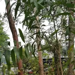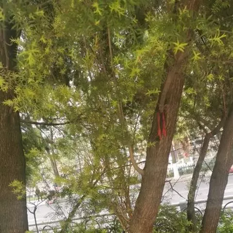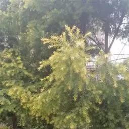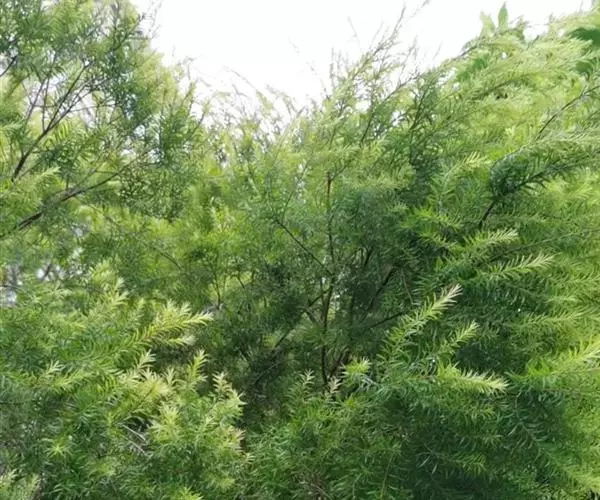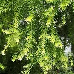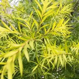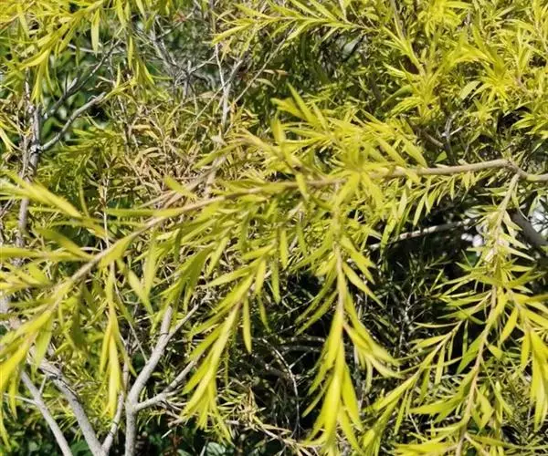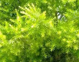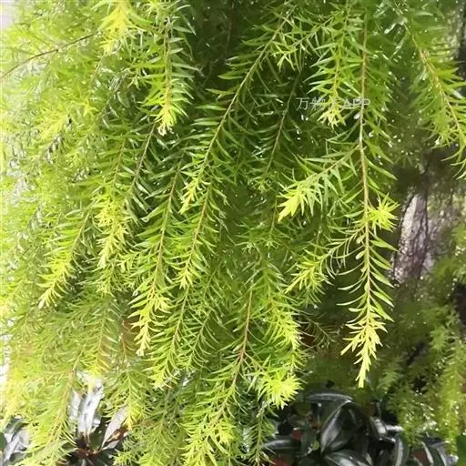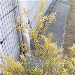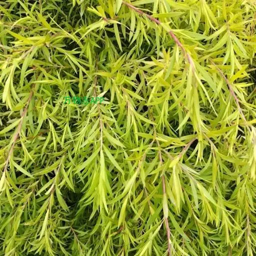 黄金串钱柳为桃金娘科白千层属常绿乔木,在广州,叶片秋、冬、春三季表现为金黄色,夏季由于温度较高为鹅黄色。1999年由新西兰首次引入我国。深根性树种,主干直立,枝条细长柔软,嫩枝红色,且韧性很强。抗风力强,在海边长势非常好。不仅可用于庭园案观、道路美化(用于行车道隔离带、人行道隔离带的造型小乔禾或行道树)、小区绿化,还可用于林相改造;同时,由于其抗盐碱、耐强风的特性,非常适于海滨及人工填海造地的绿化造莆、防风固沙等叶片芳香宜人,其含的芳香油是目前世界上珍贵的化妆品香料之一。