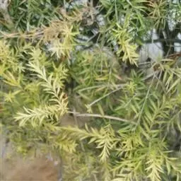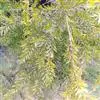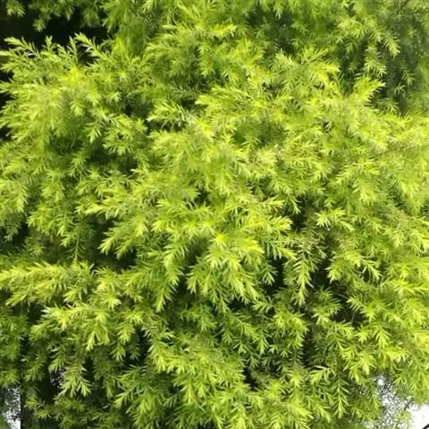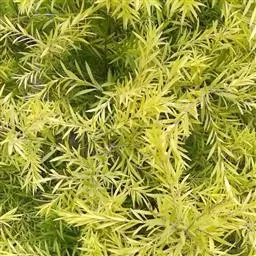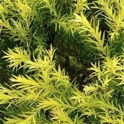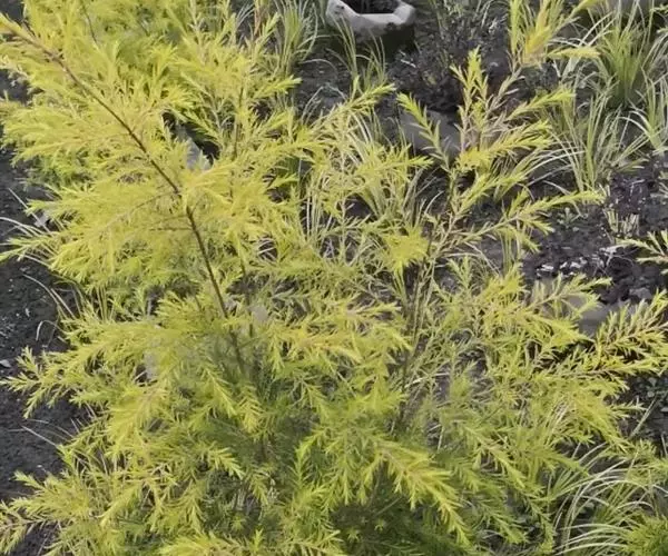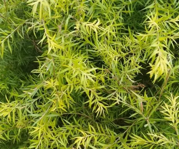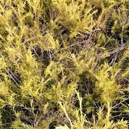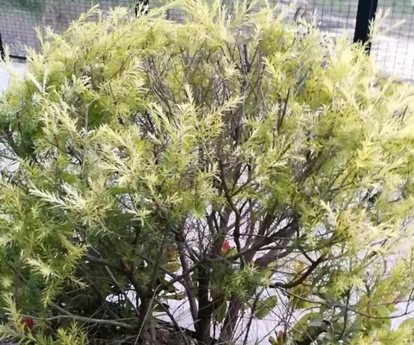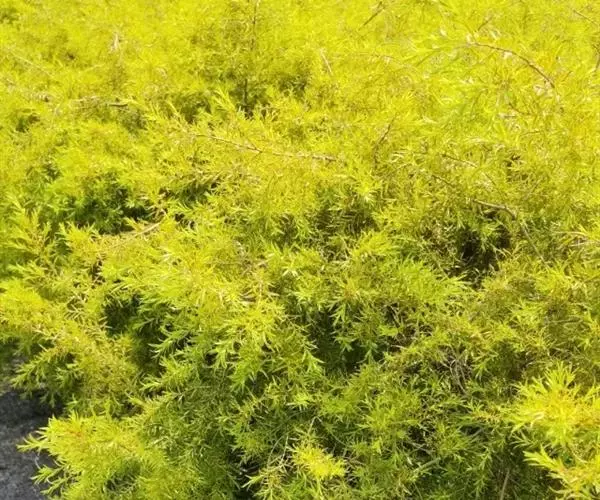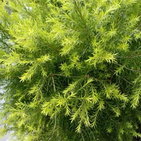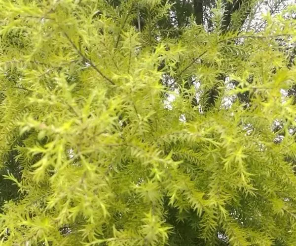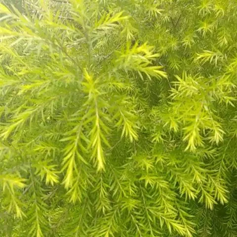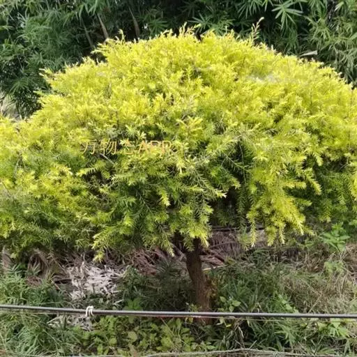 常绿灌木或小乔木,株高2~5米。叶互生,叶细小,披针形或狭线形,密集分布,金黄色或鹅黄色,夏至秋季开花,花乳白色,但以观叶为主,树冠金黄柔美,风格独具。