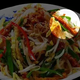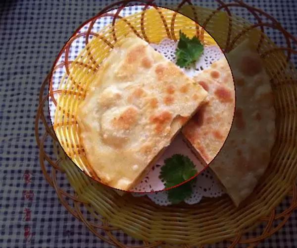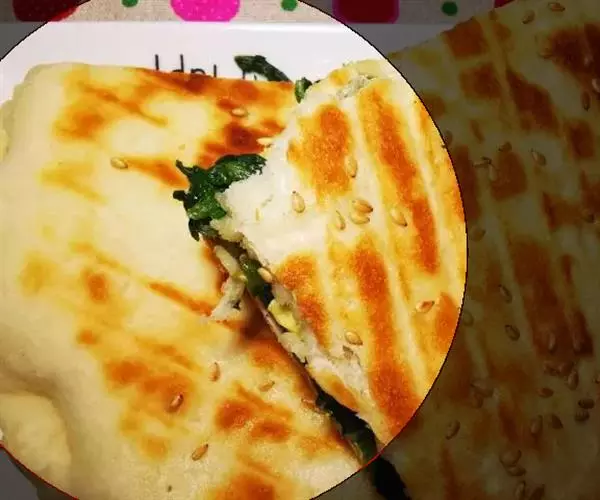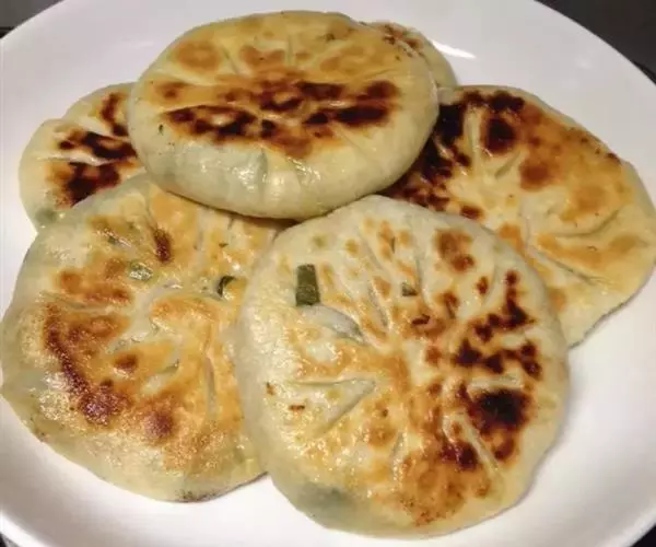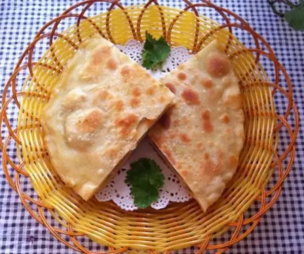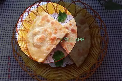 白菜粉条肉沫加油盐味精佐料调好馅,用和好的面包好,平锅内放油适量,两面塌即可