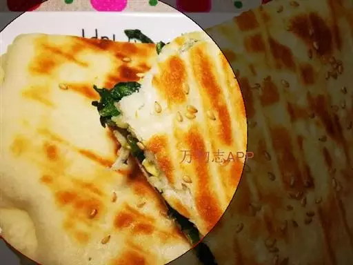 2.放平底锅里时,也可以在面饼两面刷点油,那样煎出来的更漂亮。