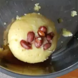 7.将炒好的鸡蛋、虾皮放入盆中,加3勺花生油,拌匀,加适量盐,拌匀备用。