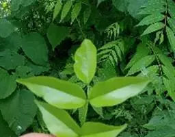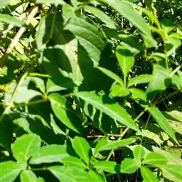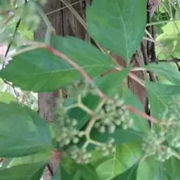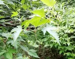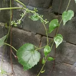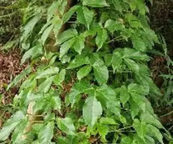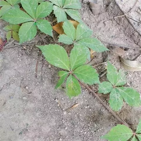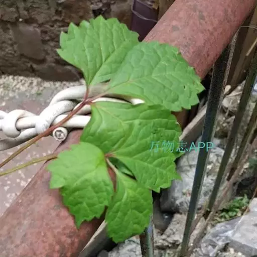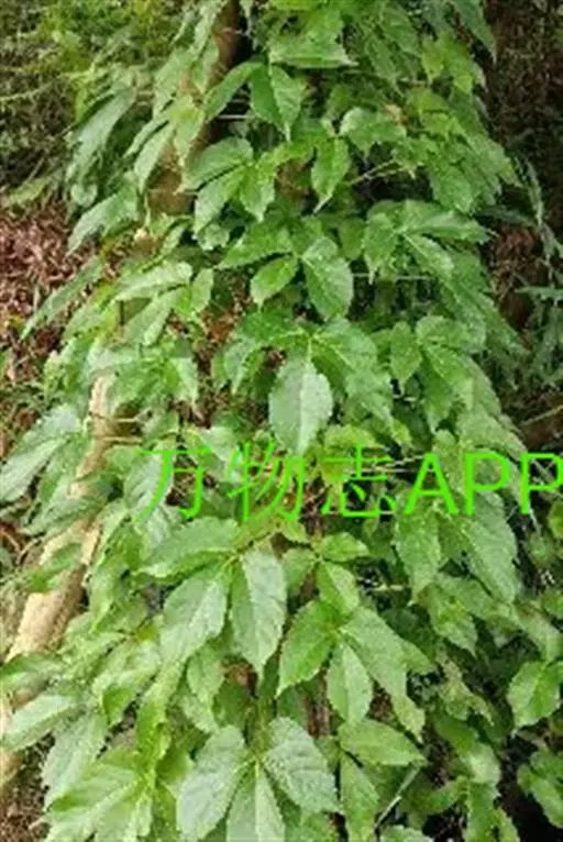 木质藤本。小枝圆柱形,嫩时被疏柔毛,以后脱落几无毛。卷须总状4-6分枝,相隔2节间断与叶对生,顶端嫩时尖细卷曲,后遇附着物扩大成吸盘。叶为3小叶,着生在短枝上,中央小叶倒卵椭圆形或倒卵圆形,长6-13厘米,宽3-6.5厘米,顶端骤尾尖,基部楔形,最宽处在上部,边缘中部以上每侧有6-11个锯齿,侧生小叶卵椭圆形或长椭圆形,长5-10厘米,宽(2) 3-5厘米,顶端短尾尖,基部不对称,近圆形,外侧边缘有7-15个锯齿,内侧边缘上半部有4-6个锯齿,上面绿色,下面浅绿色,下面中脉和侧脉上被短柔毛;侧脉4-7对,网脉两面不明显或微突出;叶柄长3.5-15厘米,疏生短柔毛,小叶几无柄。多歧聚伞花序着生在短枝上,花序基部分枝,主轴不明显;花序梗长1.5-3.5厘米,无毛或被疏柔毛;花梗长2-3毫米,无毛;花蕾椭圆形,高2-3毫米,顶端圆形;萼碟形,边缘全缘,无毛;花瓣5,卵椭圆形,高1.8-2.8毫米,无毛;雄蕊5,花丝长0.6-0.9毫米,花药卵椭圆形,长0.4-0.6毫米;花盘不明显;子房扁球形,花柱短,柱头不扩大。果实近球形,直径0.6-0.8厘米,有种子1-2颗;种子倒卵形,顶端圆形,基部急尖成短喙,种脐在背面中部呈圆形,腹部中棱脊突出,两侧洼穴呈沟状,从基部向上斜展达种子顶端。花期5-7月,果期9-10月。 [1-3]