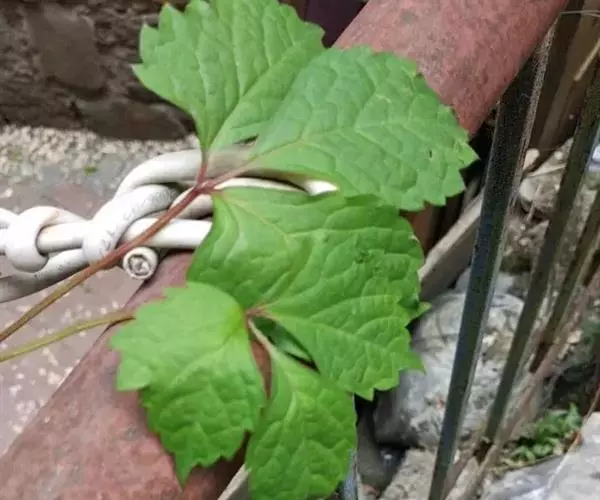 在标本馆中,本种常与异叶地锦P. dalzielii Gagnep.相混,但本种嫩枝卷须顶短细尖微弯曲而不膨大,小叶边缘锯齿粗大,叶下面脉上被短柔毛,可以区别。在栽培条件下观察本种春季抽出绿色芽,与其他3小叶类具有红色或淡红色芽的种类大不相同。 [1-2]