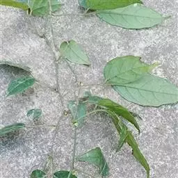 草质藤本。小枝近4,棱形,有纵棱纹,无毛或微被疏柔毛。卷须2,叉分枝,相隔2,节间断,羽叶对生。叶戟形或卵状戟形,长6-15厘米,宽4-10厘米,顶端渐尖,基部心形,边缘每侧有15-34个尖锐锯齿,上面深绿色,下面浅绿色,两面均无毛,干时两面显著不同色;基出脉5,中脉,有侧脉4-6对,网脉下面明显;叶柄长2-4.5厘米,无毛或被疏柔毛;托叶草质,卵圆形或卵椭圆形,长3-5毫米,宽约3毫米,无毛或被疏柔毛。