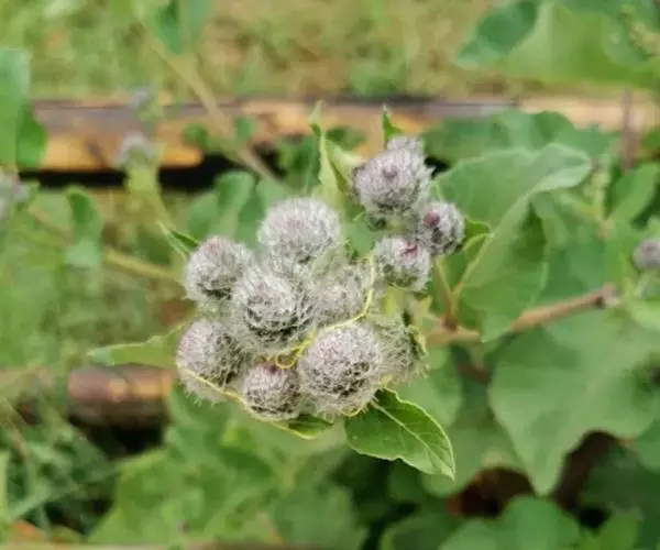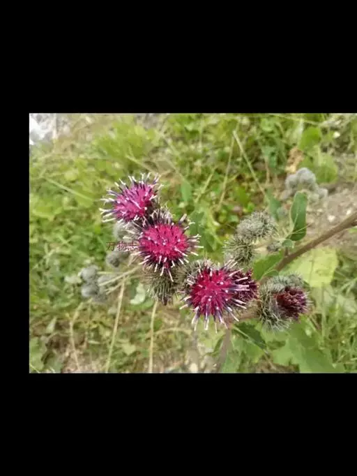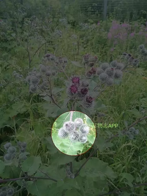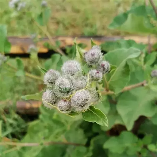 毛头牛蒡(学名:Arctium tomentosum Mill.)是二年生草本植物,有粗状的根;叶互生,心形,具长柄,背面被白色绵毛;头状花序多数,在茎枝顶端排成大型伞房花序或头状花序少数,排成总状或圆锥状伞房花序,两性,紫红色;总苞卵形或卵球形;苞片先端有钩刺;花序托有刺毛;瘦果浅褐色,倒长卵形或偏斜倒长卵形,光滑无毛;冠毛短,丰富,有锯齿,脱落。花果期7-9月。生于山坡草地。中国、中亚、欧洲等地有分布。瘦果和根宜做药用,功能同牛蒡。