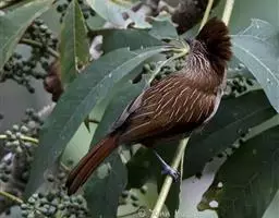 • 条纹噪鹛是画眉科、噪鹛属中型鸟类,体长28-32厘米。头具短的羽冠,上体栗褐色,飞羽外翻蓝灰色。…