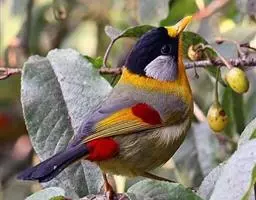 银耳相思鸟滇西亚种Leiothrix argentaurls vernayi(Mayr ef Greenway)此亚种见于西藏东南部墨脱、察隅等地区,云南西北部贡山一带;在国外,见于缅甸北;颈部淡橄榄黄色,而无金橙色泽;喉无红色,而具赭色纵纹 。
