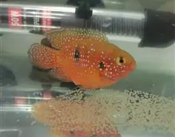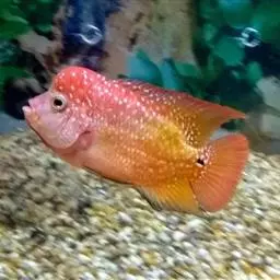 红魔鬼鱼,学名为厚唇双冠丽鱼,也叫火鹤鱼,是慈鲷科丽体鱼属下的一种观赏鱼类。血鹦鹉鱼的父本鱼种。…