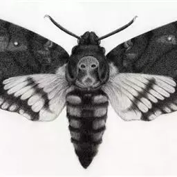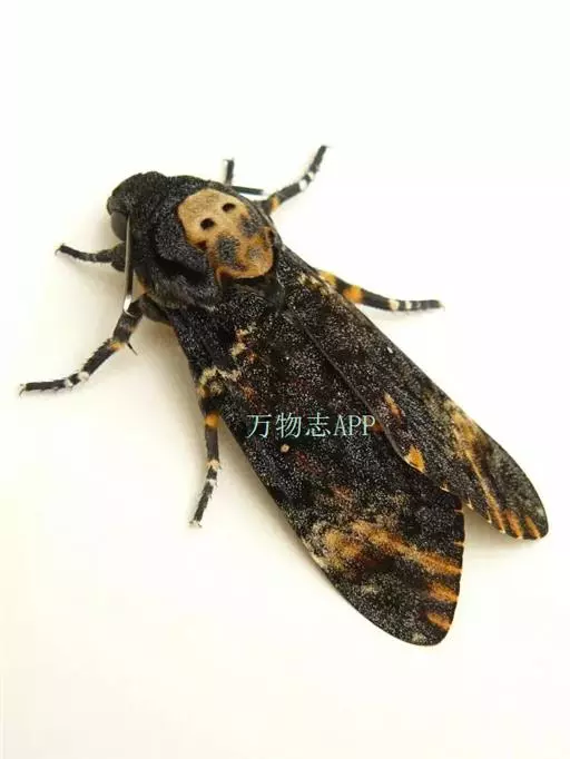 以成虫胸部背面的骷髅形斑纹而得名,以茄科、豆科、木犀科、紫葳科、唇形科为寄主。夜晚会趋光,白天停栖与翅色近似的树干上。
