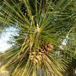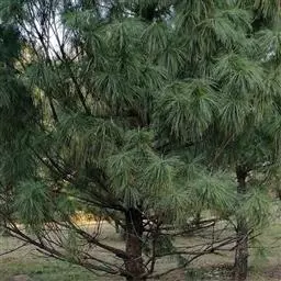 乔木,高达30米,胸径达1.5米;树皮桔红色,裂成不规则的鳞片状块片脱落,树干上部树皮红褐色;枝平展形成伞状树冠;一年生枝淡黄色或红黄色,微被白粉,无毛;冬芽矩圆状卵圆形,暗红褐色,微具树脂,芽鳞条状披针形,先端微反卷,边缘丝状。针叶2针一束,长5-12厘米,径约1毫米,先端微尖,两面有气孔线,边缘有细锯齿;横切面半圆形,皮下层细胞一层,稀角上二至三层,树脂道约4-6个,边生。