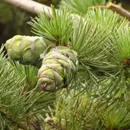 雄球花淡红黄色,圆筒形,长5-12毫米,聚生于新枝下部呈短穗状,长4-7厘米;雌球花淡红紫色,单生或2-3个聚生,一年生小球果的种鳞先端有短刺。球果成熟时暗黄褐色或淡褐黄色,种鳞张开,不久即脱落,卵圆形或卵状圆锥形,长3-5.5厘米,径2.5-4.5厘米,有短梗;种鳞薄,鳞盾扁菱形,通常扁平,稀具微隆起的横脊,鳞脐平或微凸起有短刺,稀无刺;种子倒卵状椭圆形或卵圆形,长4-7毫米;连翅长1.5-2厘米,种翅宽5-7毫米;子叶5-8枚,长2.5-4厘米,初生叶窄条形,中脉两面隆起,长2-3厘米,边缘有细锯齿。花期4月,球果第二年9月下旬至10月成熟。