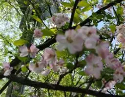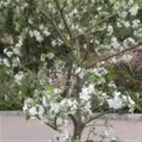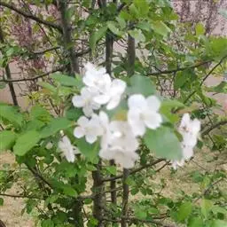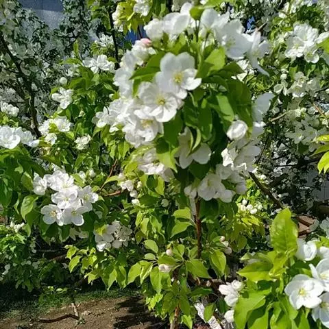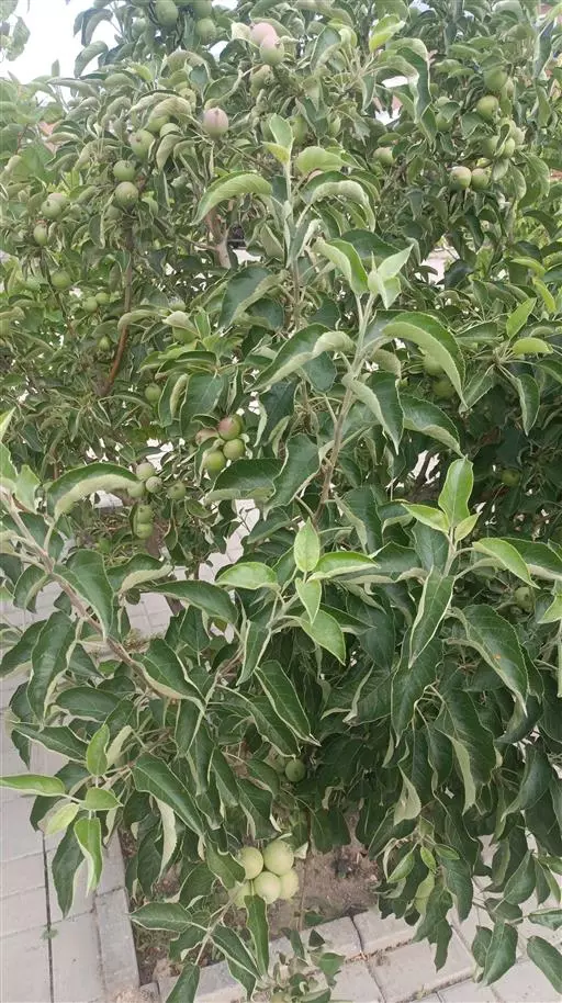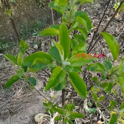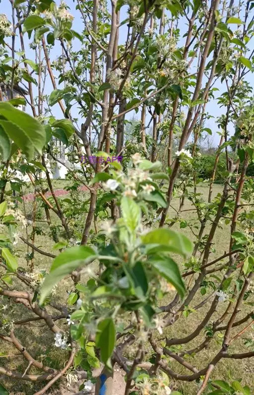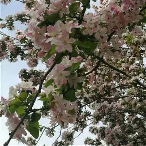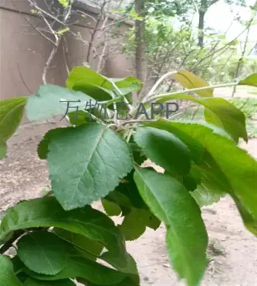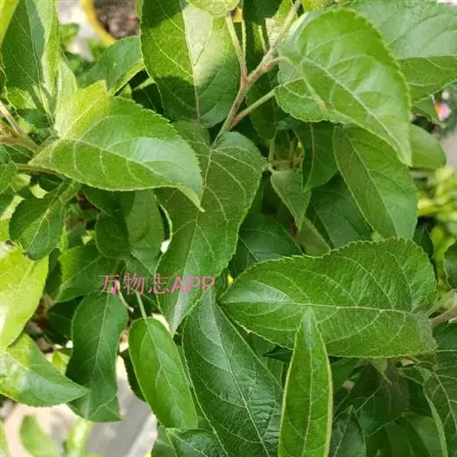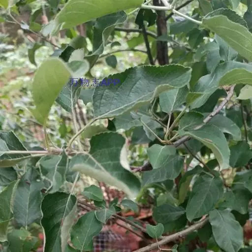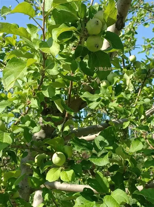 蔷薇科 ,苹果 属落叶乔木,高达15米,树干灰褐色,老皮有不规则的纵裂或片状剥落,小枝幼时密生绒毛,后变光滑,紫褐色。叶序为单叶互生,椭圆形到卵形,长4.9~10厘米,先端尖,缘有圆钝锯齿,幼时两面有毛,后表面光滑,暗绿色。花白色带红晕,径3~5厘米,花梗与花萼均具有灰白色绒毛,萼叶长尖,宿存,雄蕊20,花柱5,大多数品种自花不育,需种植授粉树。果为略扁之球形,径5厘米以 上,两端均凹陷,端部常有棱脊。花期4~6月,果期7~11月果熟。