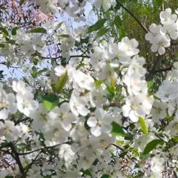 开花:苹果开花期因各地气候不同而有很大差异。一般在4~5月份,每花芽有花3~7朵,且中心花先开。苹果是异花授粉植物,大部分品种自花不能结实。各类结果枝的比例因树龄、品种不同而有变化。通常是幼树的长果枝和中果枝较多,随着树龄的增大,短果枝比例迅速上升,及至盛果期,一般可达70%以上,衰老期几乎完全是短果枝。从品种上看,金帅等品种的长果枝与中果枝较多,新红星、红富士等品种的短果枝比例大,辽伏等品种容易形成腋花芽。