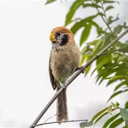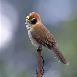 白眶鸦雀是莺科、鸦雀属小型鸟类,体长12-14厘米。嘴黄色、短而粗厚,头顶至后颈褐色沾棕具白色眼圈,…