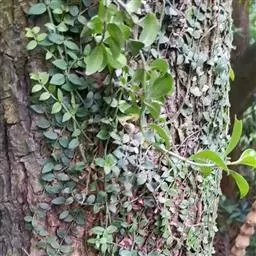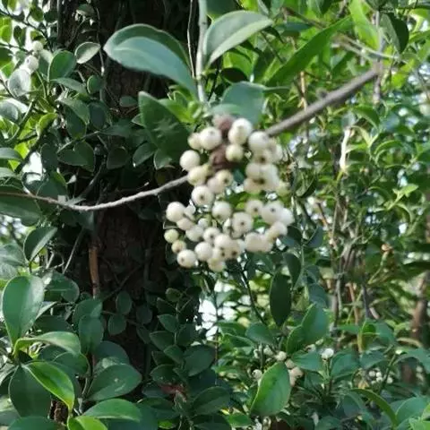 蔓九节是茜草科九节属的攀援或匍匐藤本植物。常以气根攀附树干或岩石;幼枝无毛或有粃糠状柔毛;幼树叶卵形或倒卵形,托叶膜质;圆锥状或伞房状聚伞花序顶生,苞片和小苞片线状披针形,花萼倒圆锥形,花冠白色,冠筒与裂片近等长,裂片长圆形;浆果状核果球形或椭圆形;花期4-6月;果期全年。因叶片紧贴着树干往上生长,宛如一条青龙上树,故又名“上树龙”。蔓九节分布在中国浙江、福建、台湾等省地,在日本、朝鲜、越南等国也有分布,生长在海拔70-1360米的平地、丘陵、山地、山谷水旁的灌丛或林中。喜温暖湿润,不耐寒,耐荫,适宜选用排水良好、富含有机质的砂质土壤。蔓九节在《世界自然保护联盟濒危物种红色名录》中属于无危。繁殖方法一般为扦插、压条、播种繁殖。据《福建药物志》中记载蔓九节“有祛风除湿,舒筋活络的功效。主治风湿关节痛,头风痛,手足麻木坐骨神经痛,腰肌劳损,