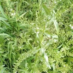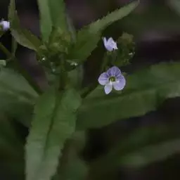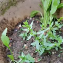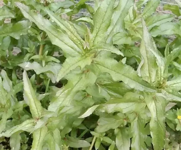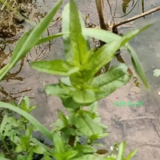 2、水苦荬又名:水莴苣、水菠菜、芒种草。与前一种在体态上极为相似,惟植株稍矮些;叶片有时为条状披针形,通常叶缘有尖锯齿;茎、花序轴、花萼和蒴果上多少有大头针状腺毛;花梗在果期挺直,横叉开,与花序轴几乎成直角,因而花序宽过1厘米,可达1.5厘米;花柱也较短,长1-1.5毫米。