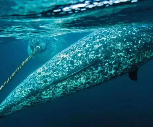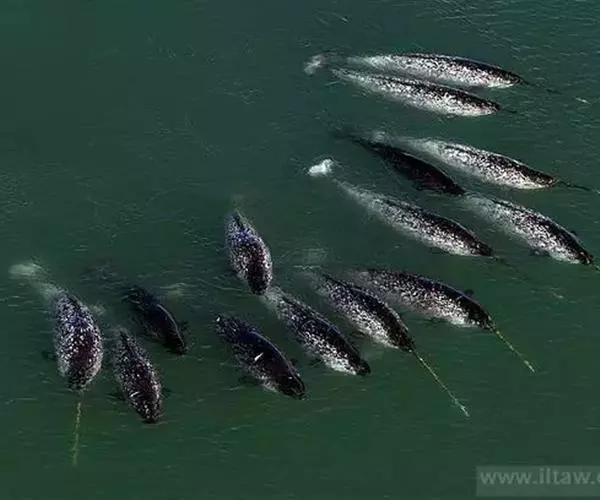 传统观点认为一角鲸是深水鲸种,实际上它们在靠近北极浮冰带的海洋各层深度觅食。