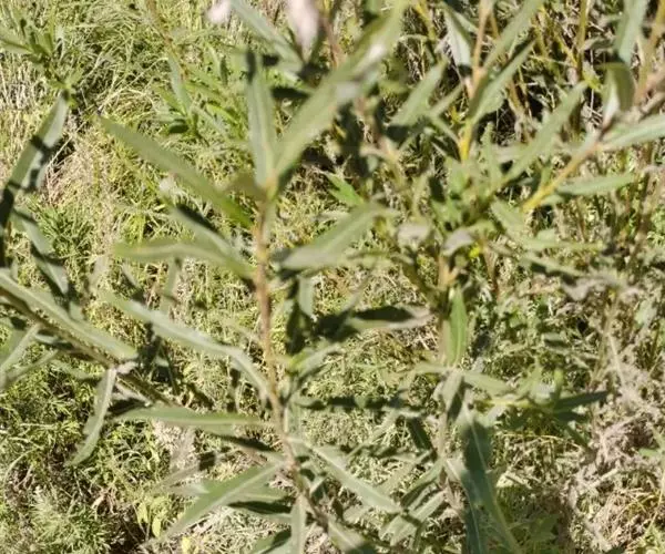 落叶灌木或乔木,高5-8米,小枝纤细,灰色或褐色;节间较短。叶互生,纸质,狭披针形,长30-55毫米,宽3-5毫米,基部最宽,顶端钝形,边缘全缘,微反卷,上面绿色或稍带白色,具散生星状白色短柔毛或绒毛,尤以中脉为多,下面灰白色,密被银白色和散生少数褐色鳞片,有时散生白色绒毛,中脉在上面下陷,下面显著凸起;叶柄极短或几无。果实椭圆形,长5-7毫米,直径3-4毫米,黄色;果梗长约1毫米;种子椭圆形,甚扁,具六纵棱,长4.5-5毫米,直径约3毫米,带黑色,无光泽,种皮微皱,羊皮纸质。