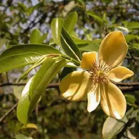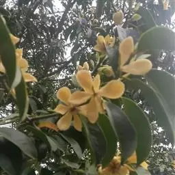 金叶含笑(学名:Michelia foveolata Merr. ex Dandy)是木兰科,含笑属小乔木,高可达8米。芽圆柱形或狭卵形,嫩枝被淡黄色绒毛,老枝无毛,叶革质,长圆形或卵状长圆形,先端渐尖或急尖,基部宽楔形或近圆钝,托叶与叶柄离生,无托叶痕。花梗密被淡黄色长绒毛;花黄色,花被片长圆形或倒卵状长圆形,雌蕊群圆柱形,雌蕊群心皮卵圆形,花柱褐色。聚合果圆柱形,蓇葖长圆体形,3月开花,11月结果。
