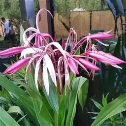 株型和亚洲文殊兰没有大的区别,花朵染上了锡兰条纹文殊兰的红色。花朵形状依然和亚洲文殊兰一样不整齐。
