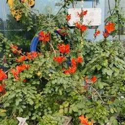 硬骨凌霄 Spach)是紫葳科硬骨凌霄属的多年生常绿木质藤本植物。茎多分枝;枝带绿褐色;叶对生,…