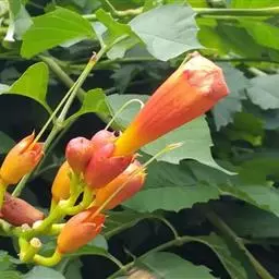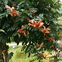 厚萼凌霄 Seem.)是紫葳科凌霄属植物,藤本,具气生根,长达10米。小叶9-11枚,…