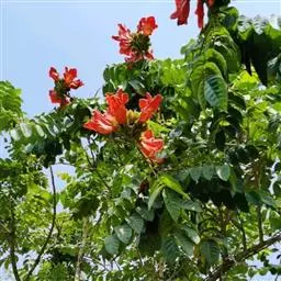 火焰木,又名苞萼木、喷泉树,为紫葳科常绿大乔木,株高10—20米,叶为奇数羽状复叶,对生,较大,斜…