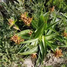 花枝数个丛生,较短,斜升,黄绿色,光滑。叶常对折,先端渐尖,边缘白色软骨质,密被乳突,中脉白色软骨质,在两面均明显,并在下面突起,密被乳突,叶柄白色膜质,光滑;莲座丛叶发达,剑状披针形,长4-6厘米,宽0.3-1厘米,茎生叶少,密集,椭圆状披针形或卵状披针形,长1.5-3厘米,宽0.3-0.6厘米。