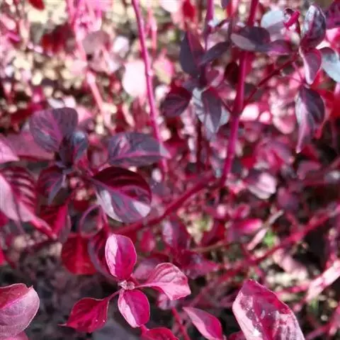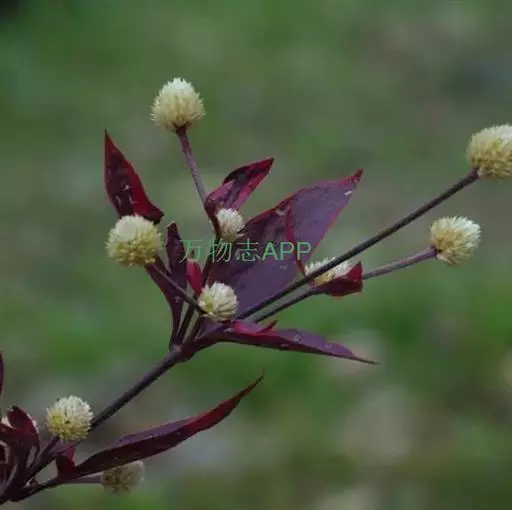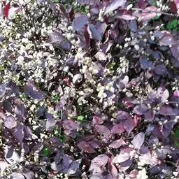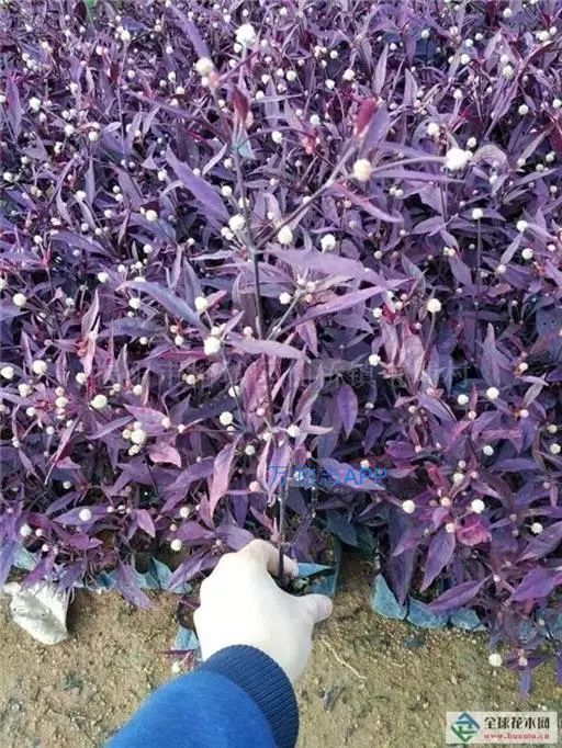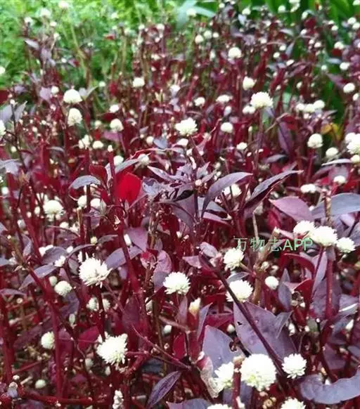 多年生草本,高度×冠幅:30cm—60cm×30—50cm。质感中至细。茎叶铜红色,冬季开花,花乳白色,小球形,酷似千日红。
